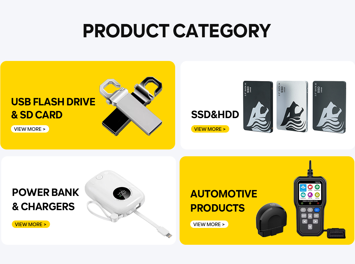 Produk utama: SSD, Flash Drive USB, kartu SD mikro, pengisi daya, HDD